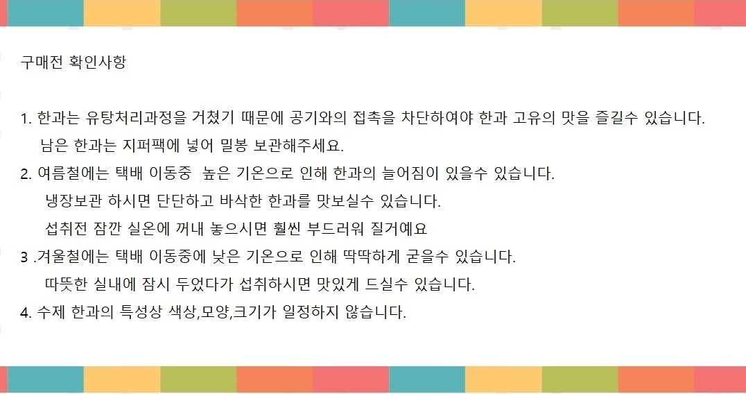 | 주소 : 강원도 홍천군 홍천읍 석화안길1길 9 홍천순옥한과 통신판매업 신고 : 2018-강원홍천-0068 | 연락처 : 033-434-5825 | FAX : 050-4059-1005 | 개인정보보호 책임자 : 유은정 | 대표자 : 이용길,유은정 contact : hcsunok@gmail.com for more information. hosting by ㈜ 가 비 아 씨 엔 에 스 |